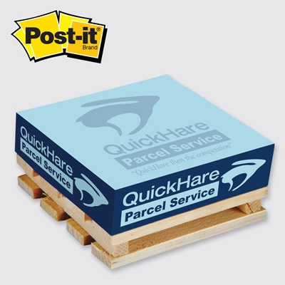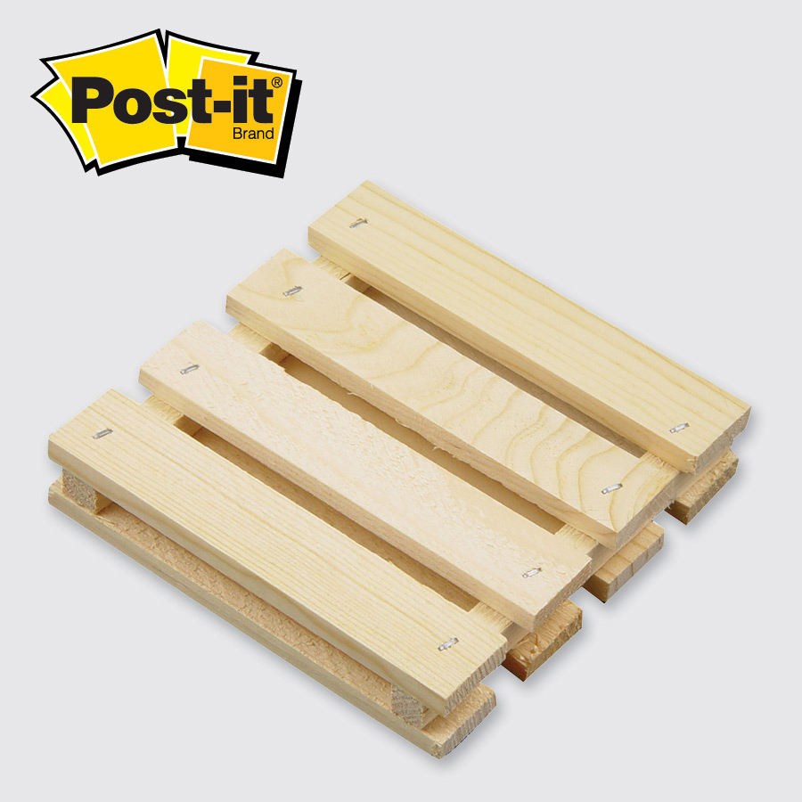 - Notes cubes are individually shrinkwrapped on top of pallets.